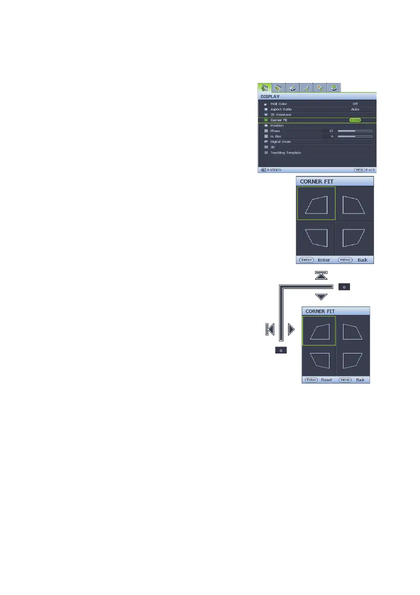 both corner fit and 2D keystone functions should be used in conjunction to achieve the