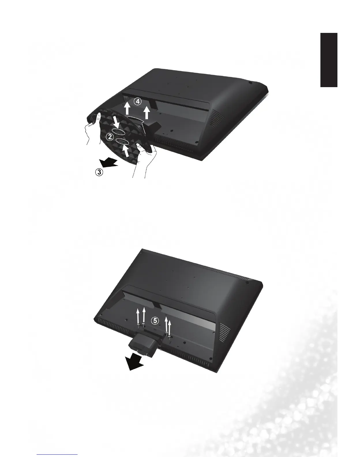 2. Push inward the two inserts located under the stand base of the LCD Display, as