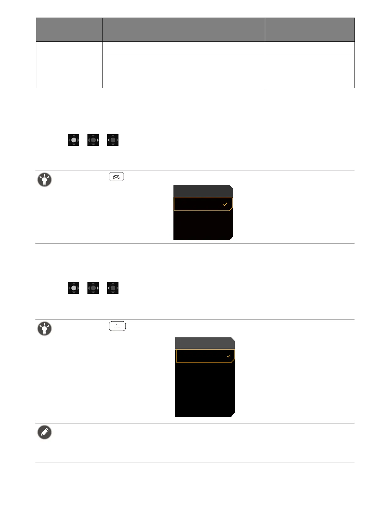 Alternatively, press on the remote control to bring up a list of Game Mode options.