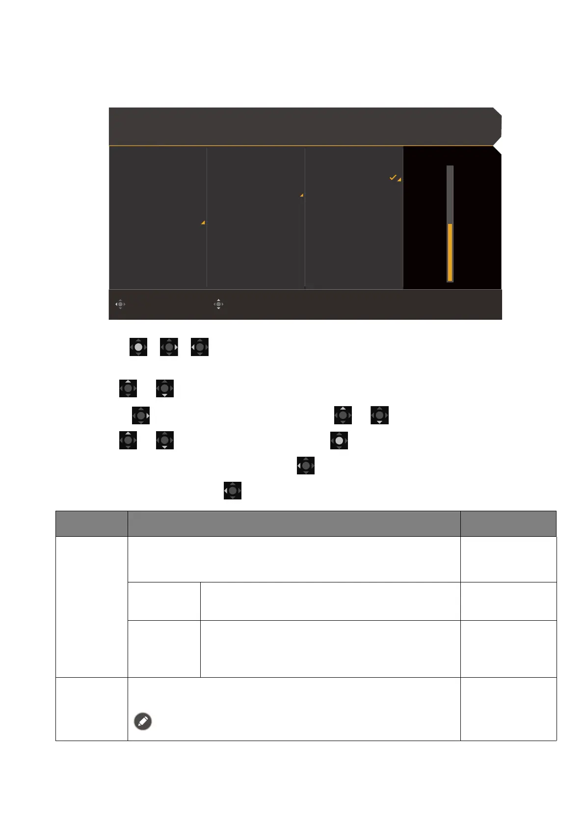 5. Use or to make adjustments, or use to make selection.