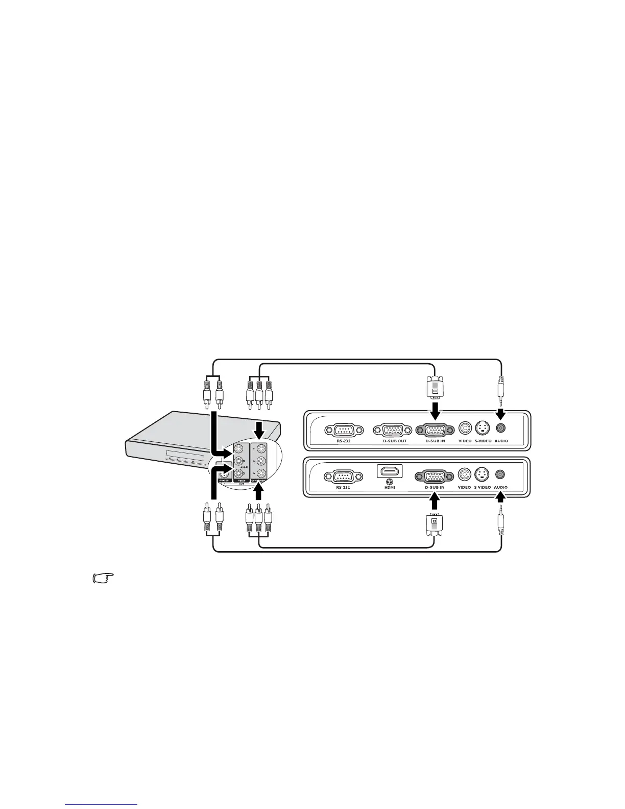 output socket of the device, and the other end to the AUDIO socket of the projector.