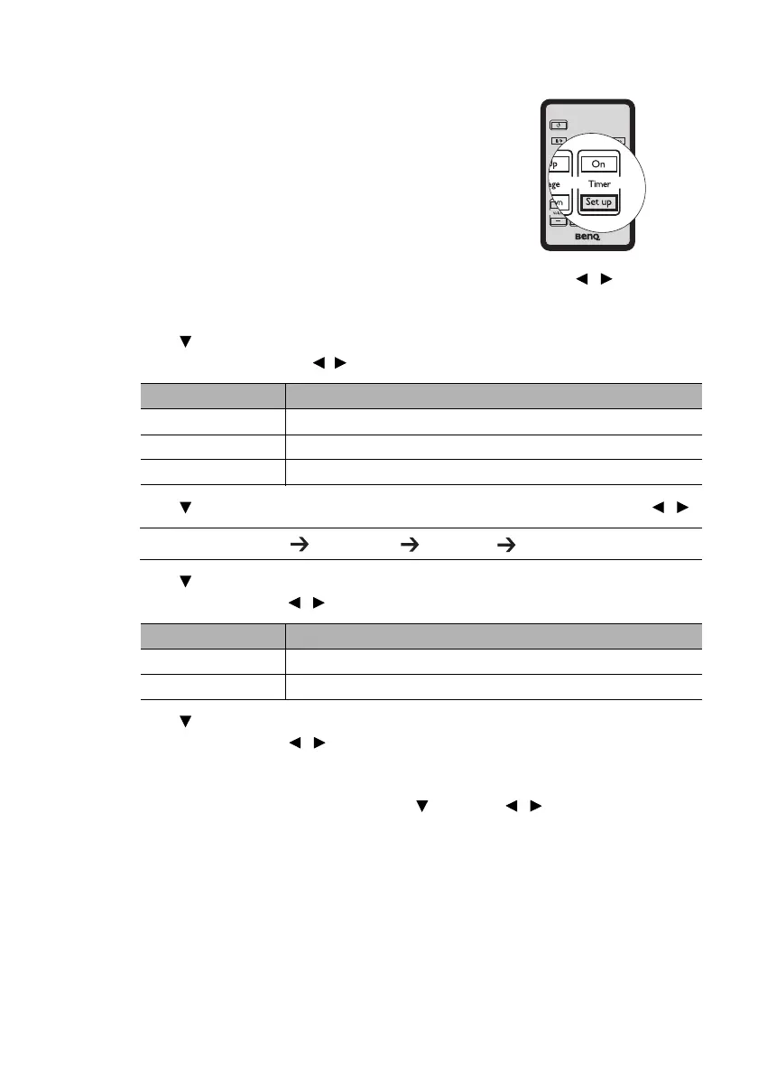 1. Press Timer Set up on the remote control or go to