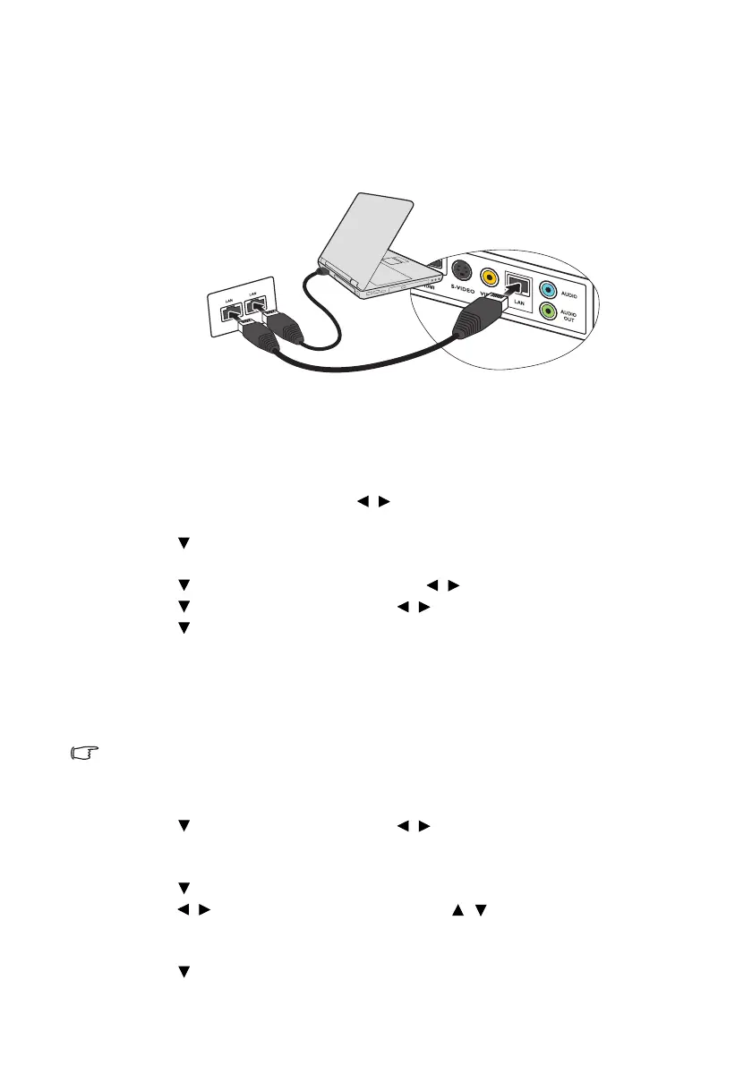 1. Take a RJ45 cable and connect one end to the RJ45 LAN input jack of the projector