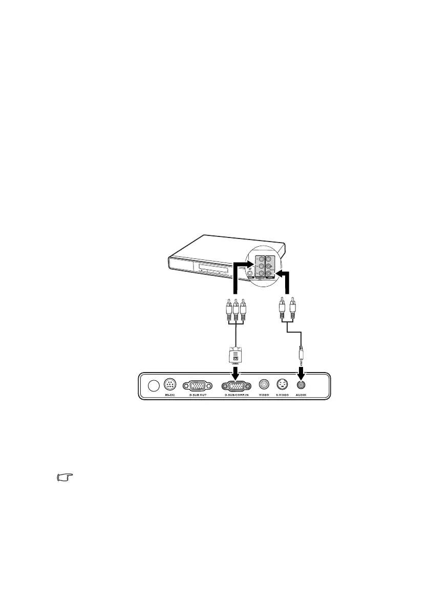 a D-Sub type connector) to the D-SUB/COMP IN socket on the projector.