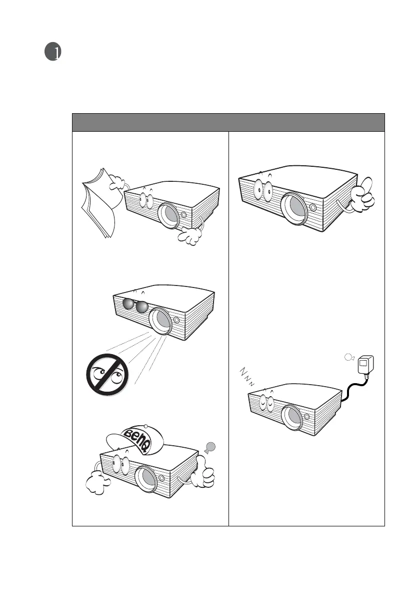6. Do not block the projection lens with