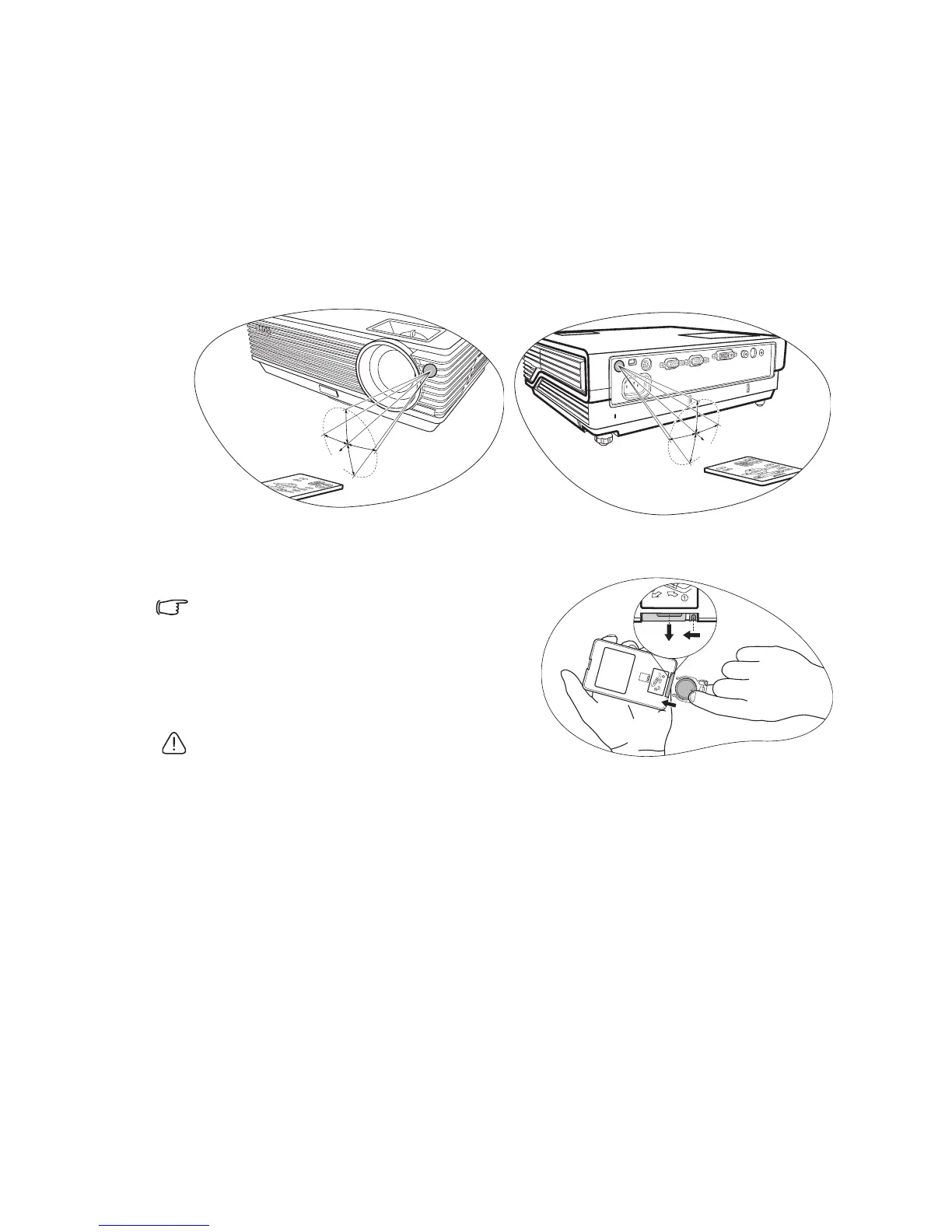 projector's IR remote control sensors to function correctly. The distance between the remote