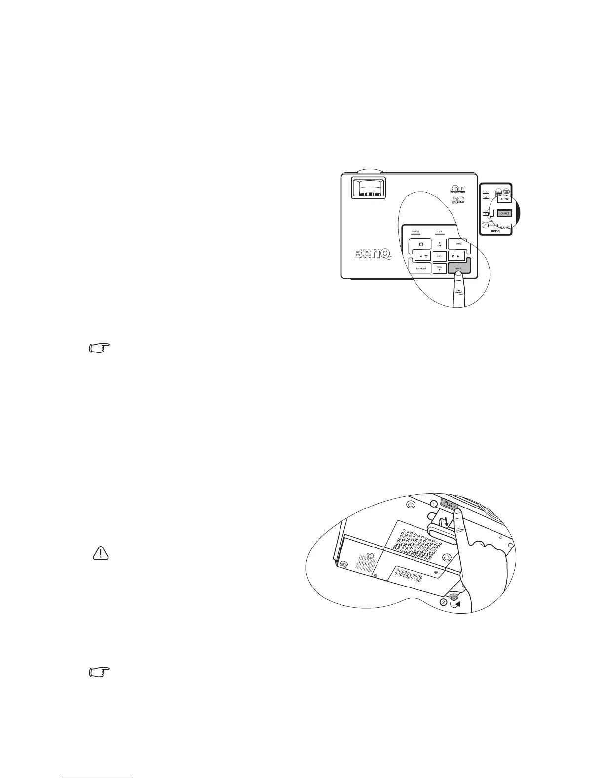 To retract the foot, hold up the projector while pressing the quick-release button, then