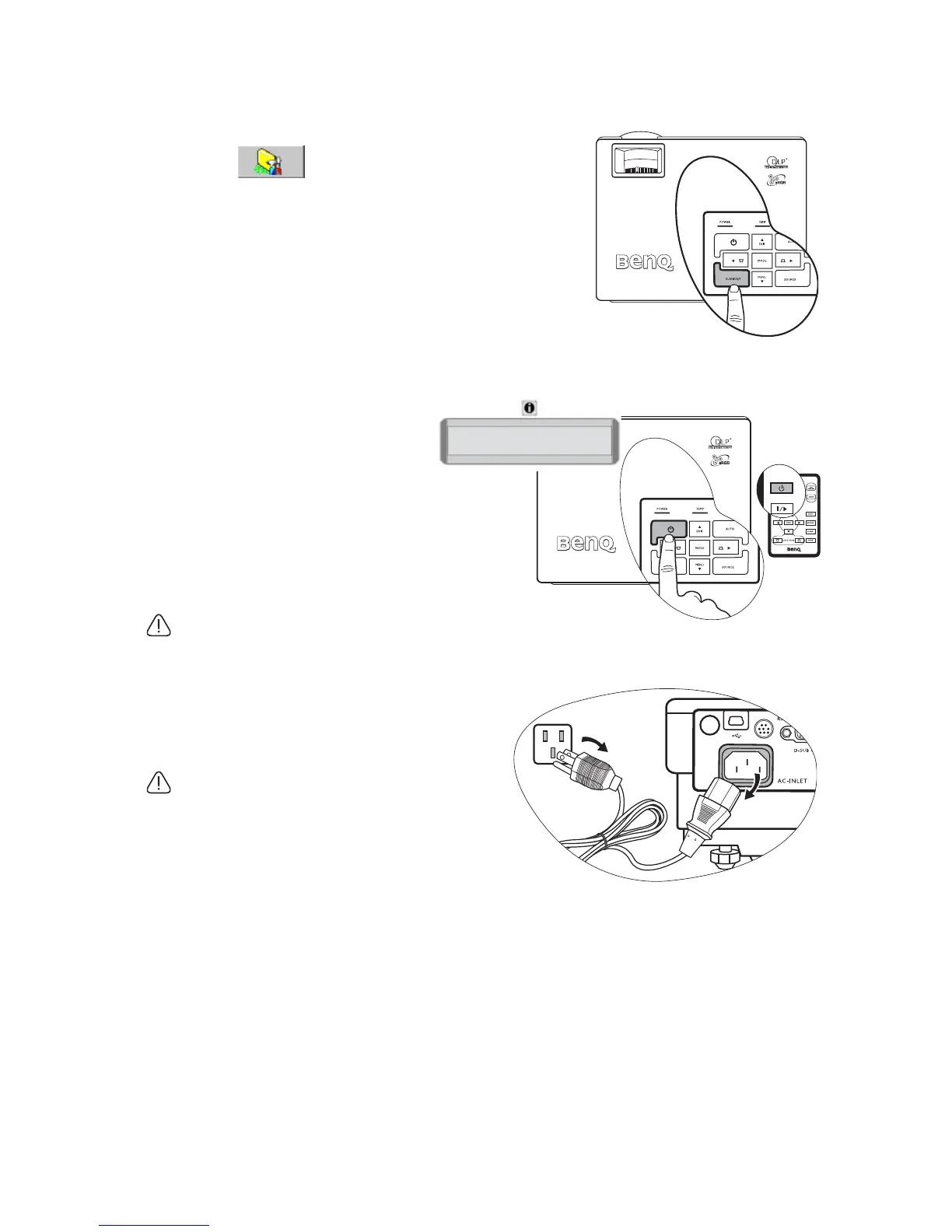 will run for a few minutes to cool down. Press Power again to start the projector after the