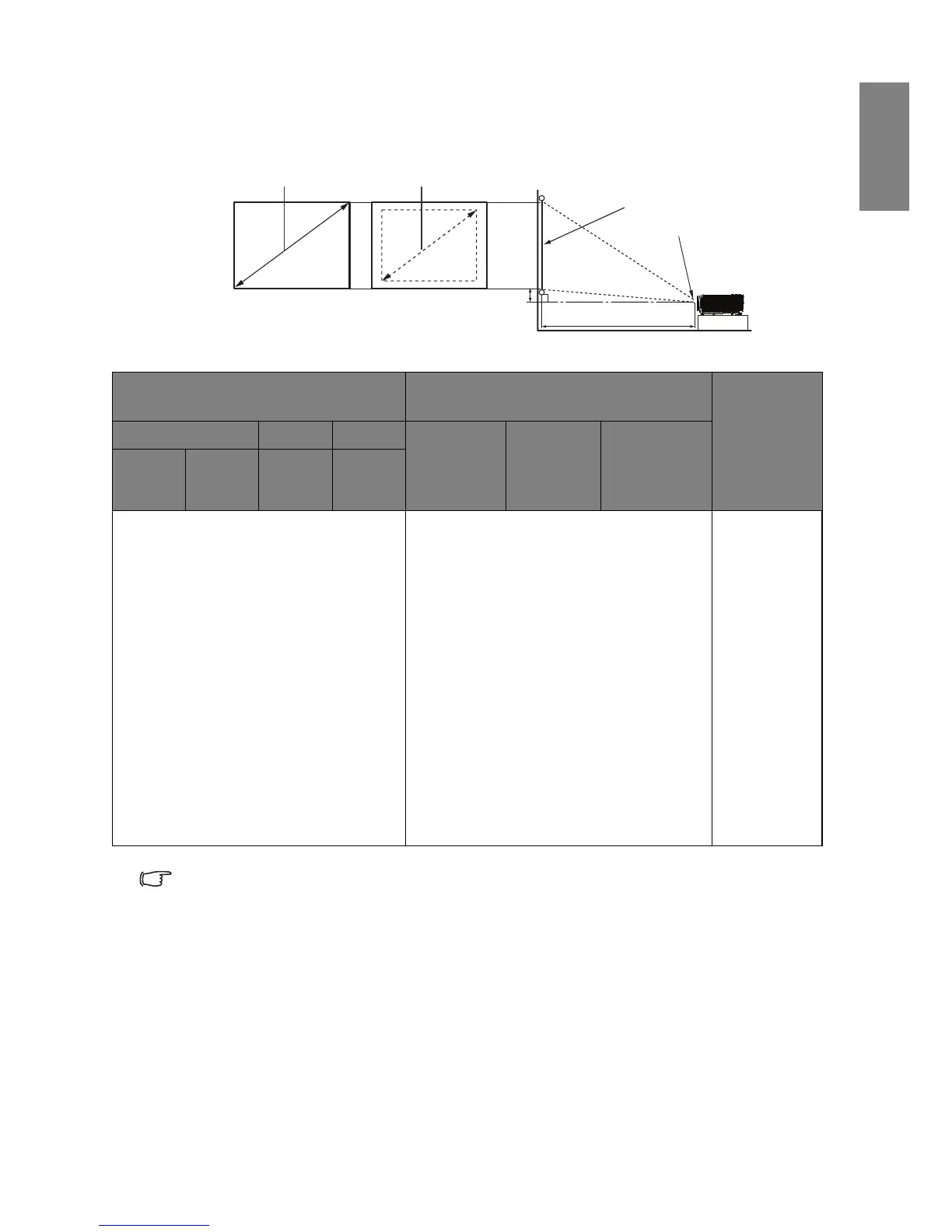 Refer to "Dimensions" on page 67 for the center of lens dimensions of this projector before
