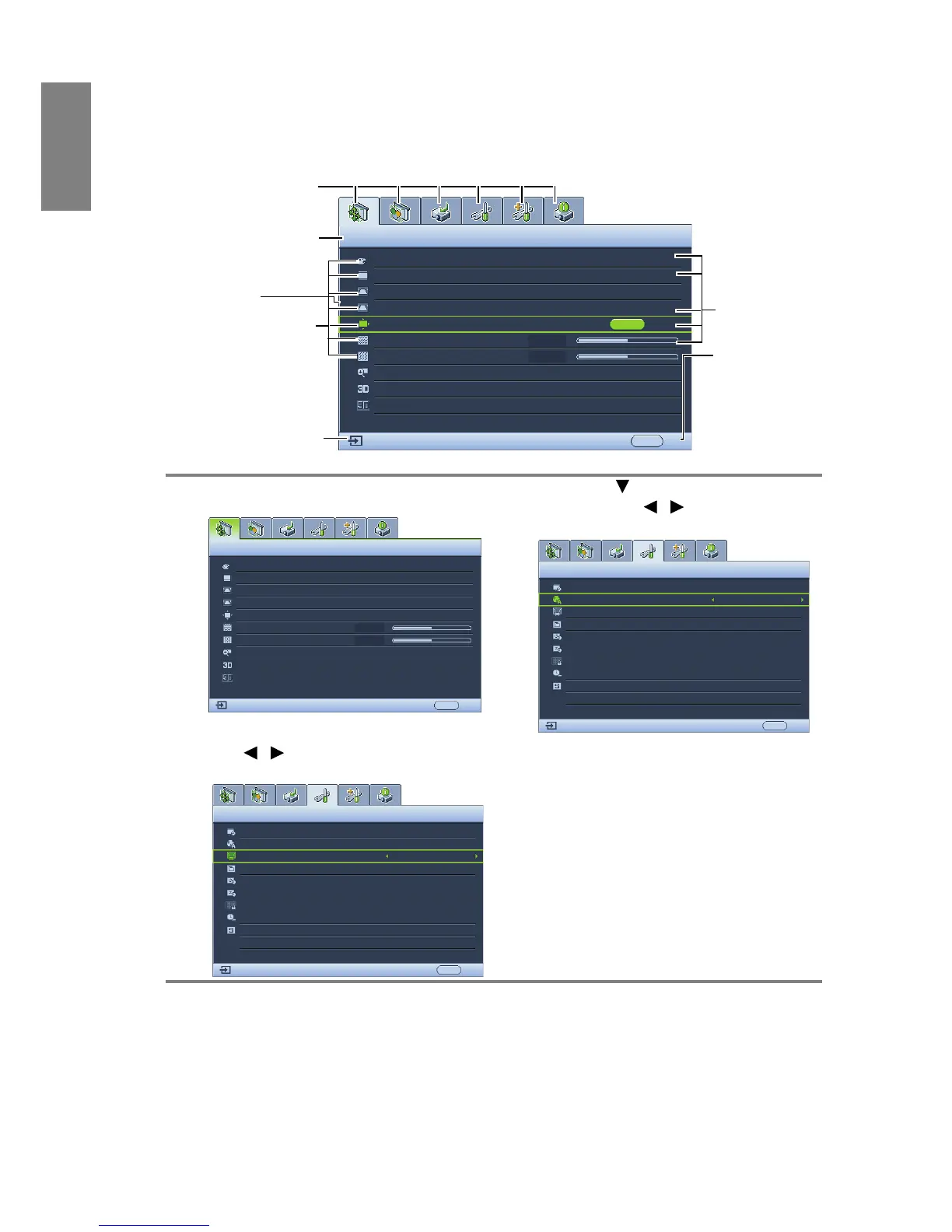 The projector is equipped with On-Screen Display (OSD) menus for making various