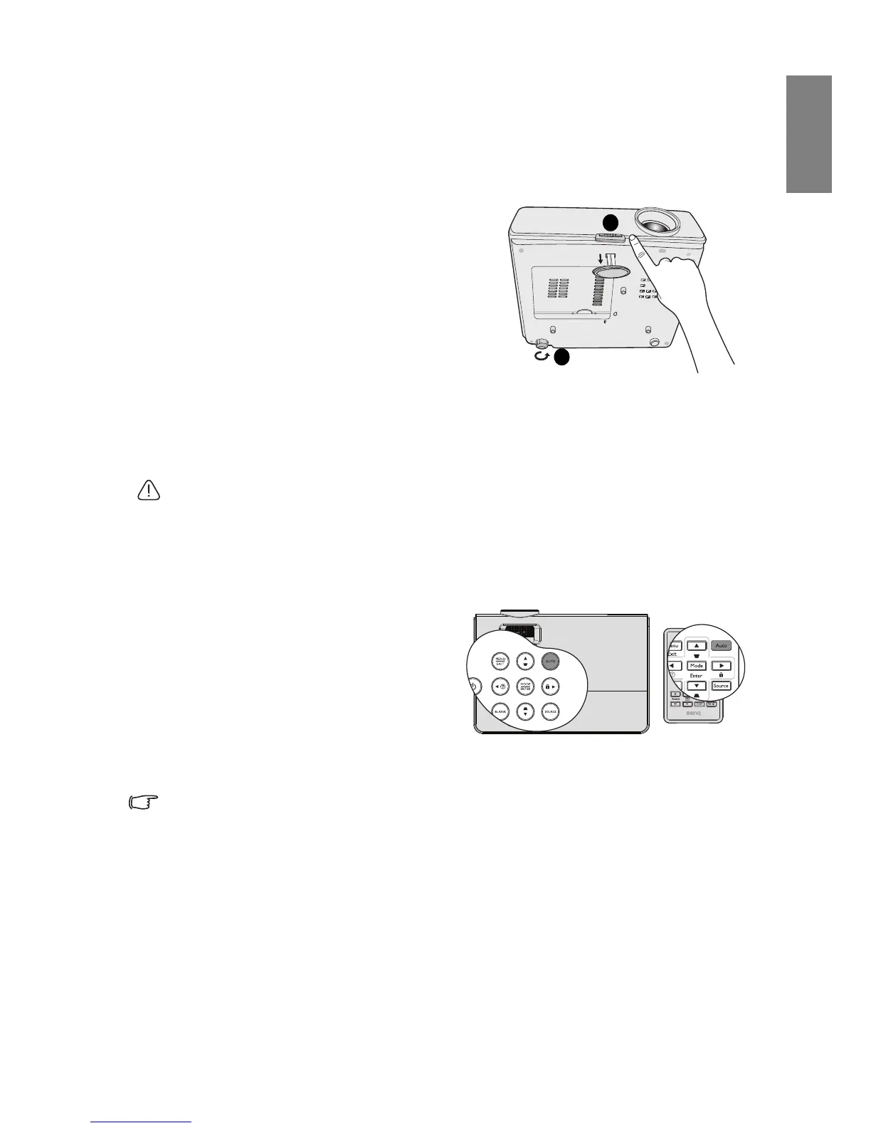 adjusters change the image height and projection angle. To adjust the projector: