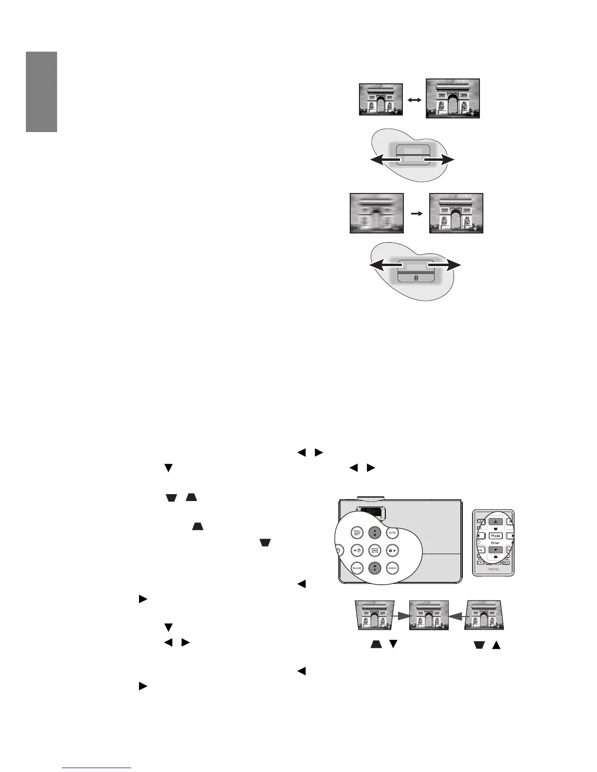 top or bottom. It occurs when the projector is not perpendicular to the screen.