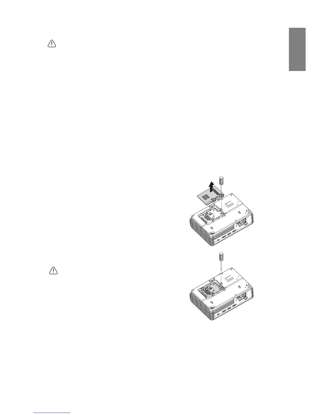 the lens, do not touch the empty lamp compartment when the lamp is removed.