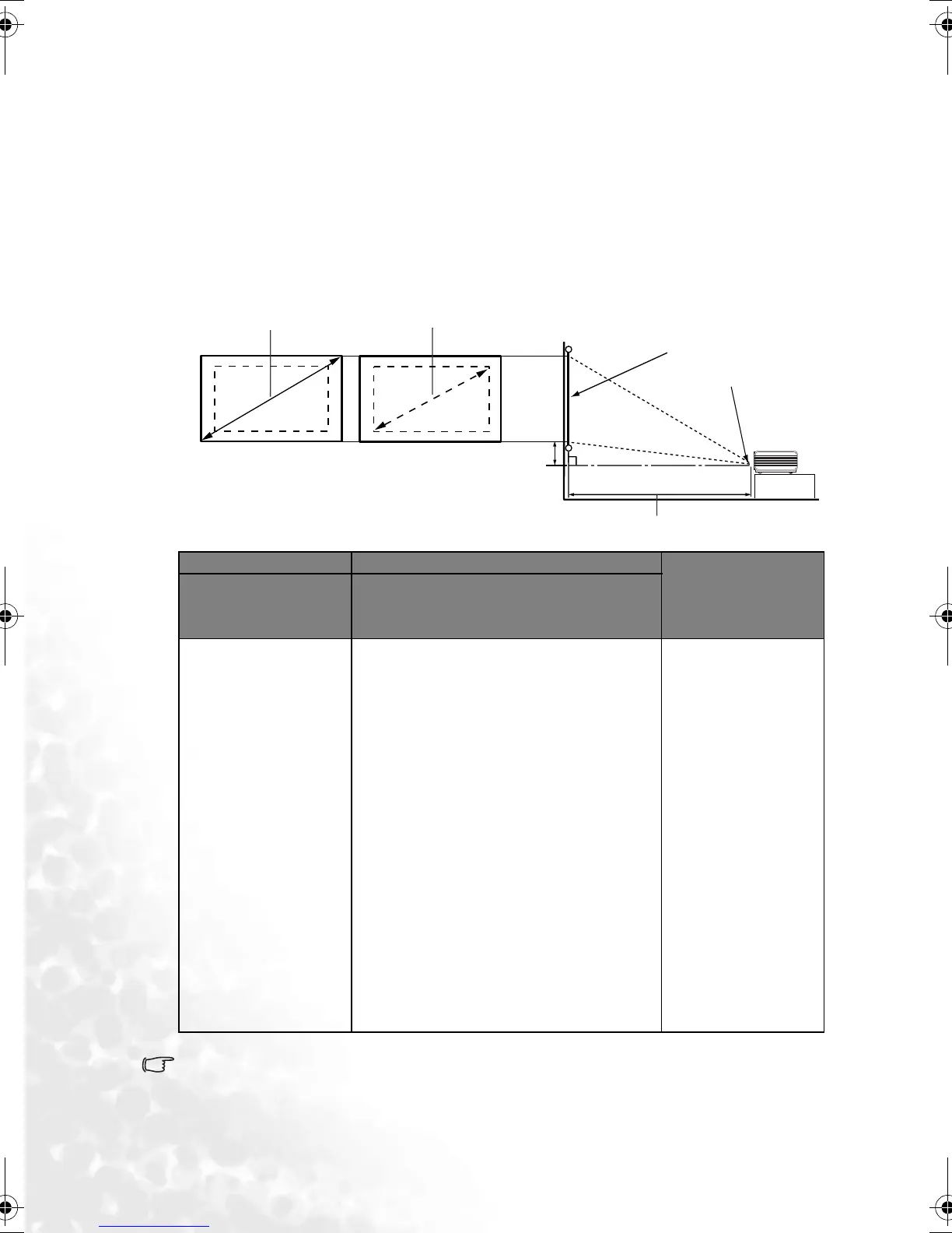 pantallas de distinto tamaño a esa distancia de proyección. Tenga en cuenta que estas