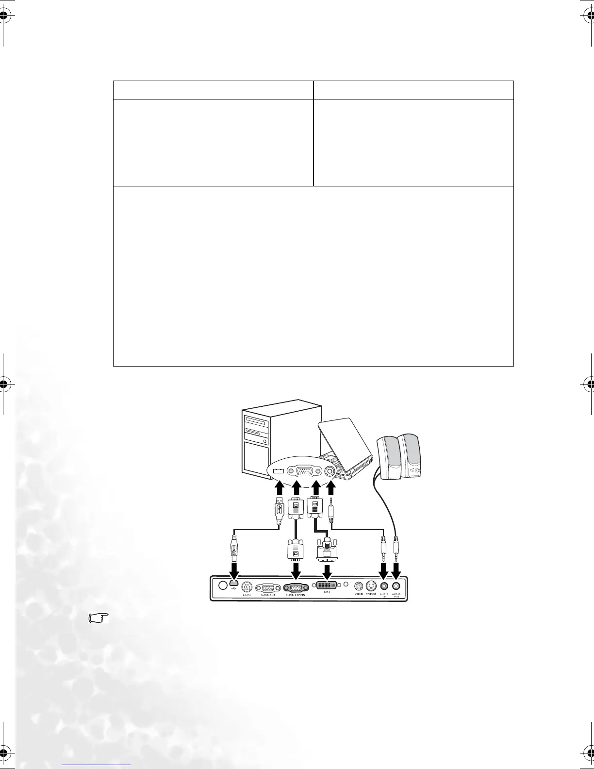 •Con un cable VGA: •Con un cable VGA-DVI: