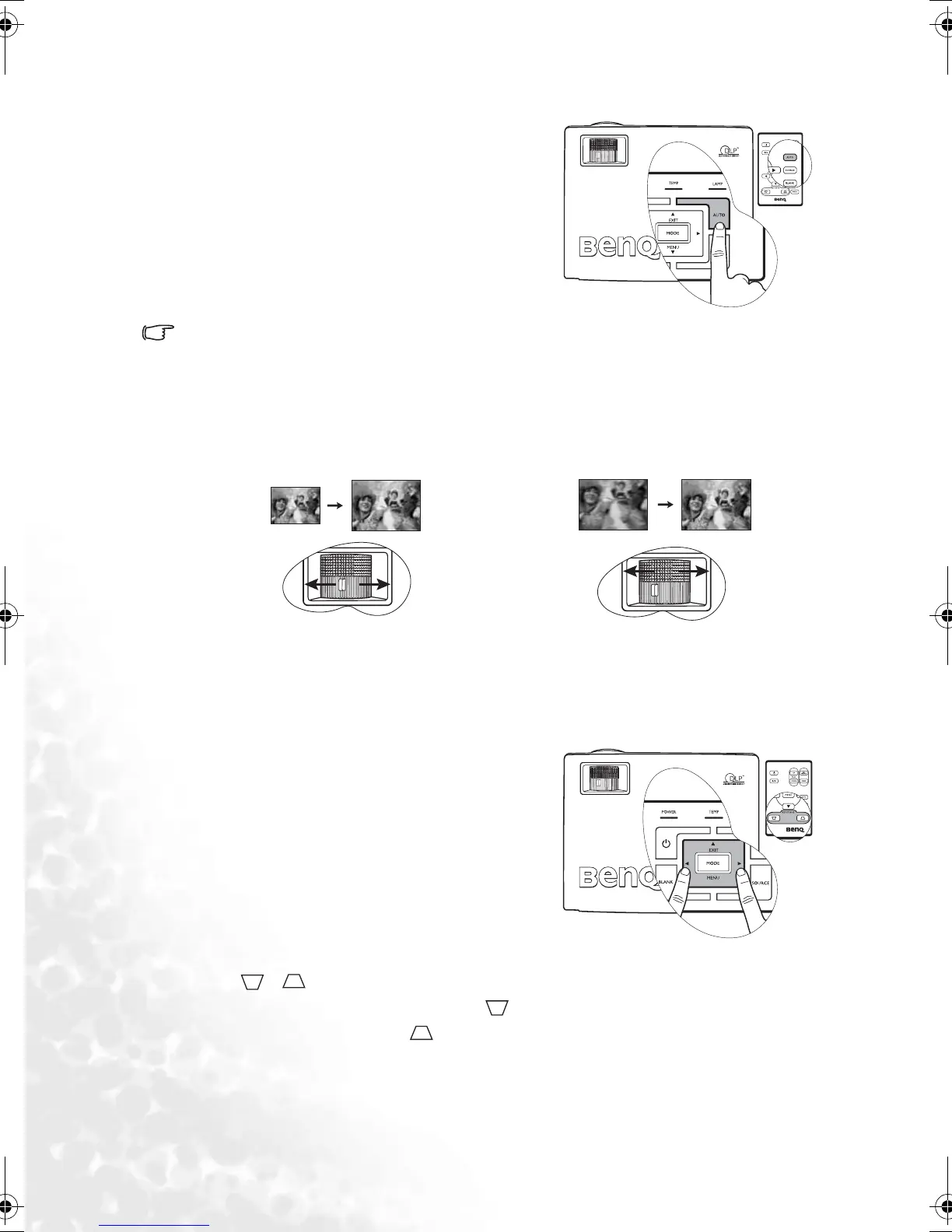 la parte superior de la imagen o para corregir la deformación trapezoidal en la parte