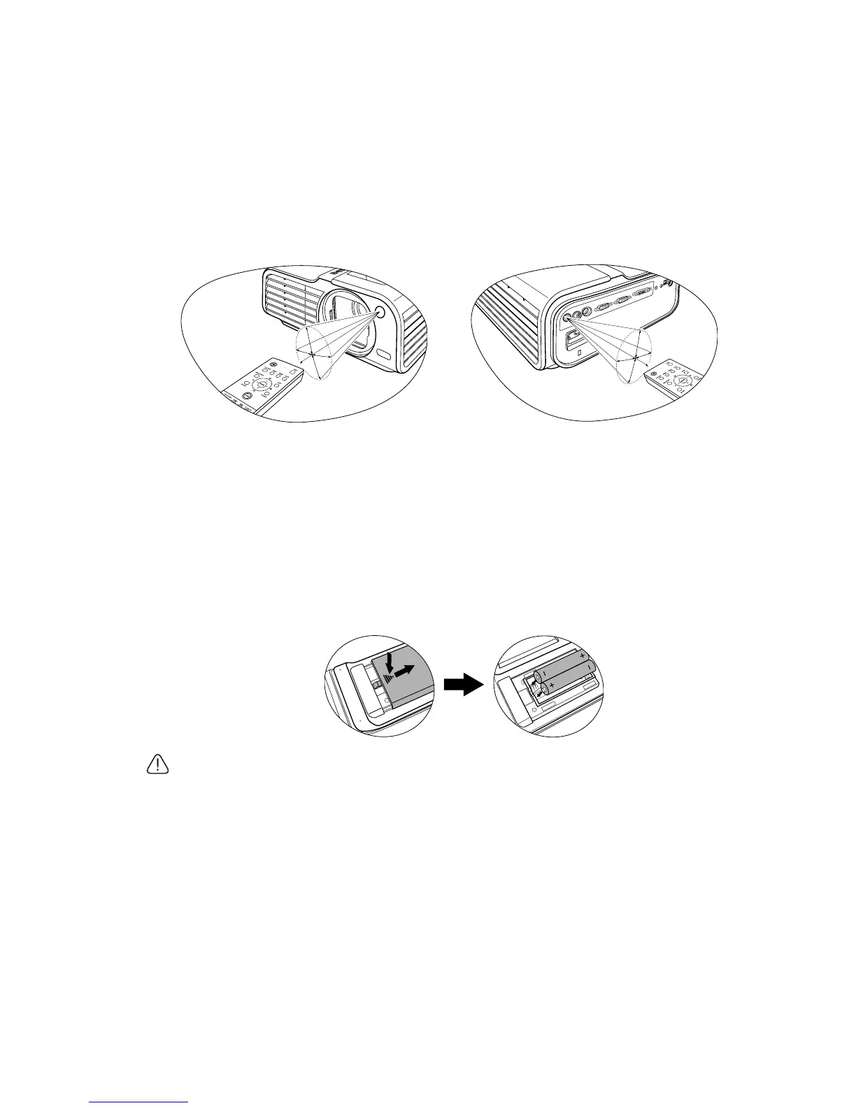 projector's IR remote control sensors to function correctly. The distance between the remote