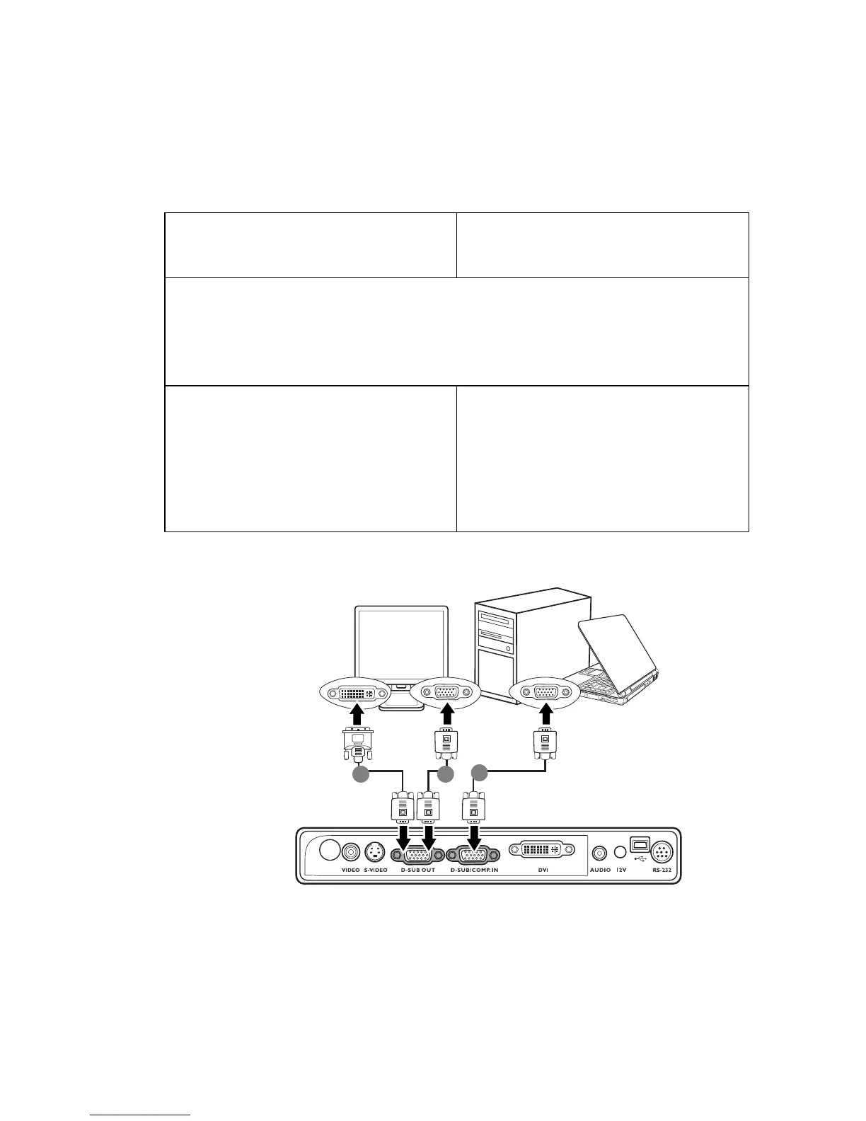 projector. Be sure the projector is connecting with the computer using the D-SUB/