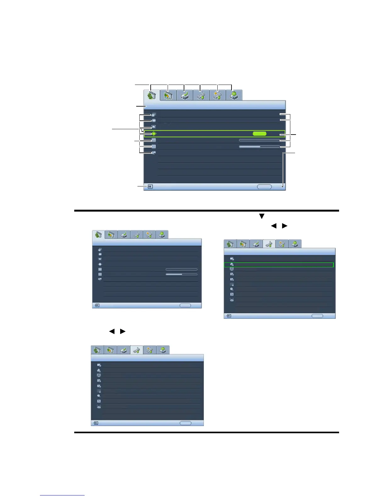 The projector is equipped with On-Screen Display (OSD) menus for making various