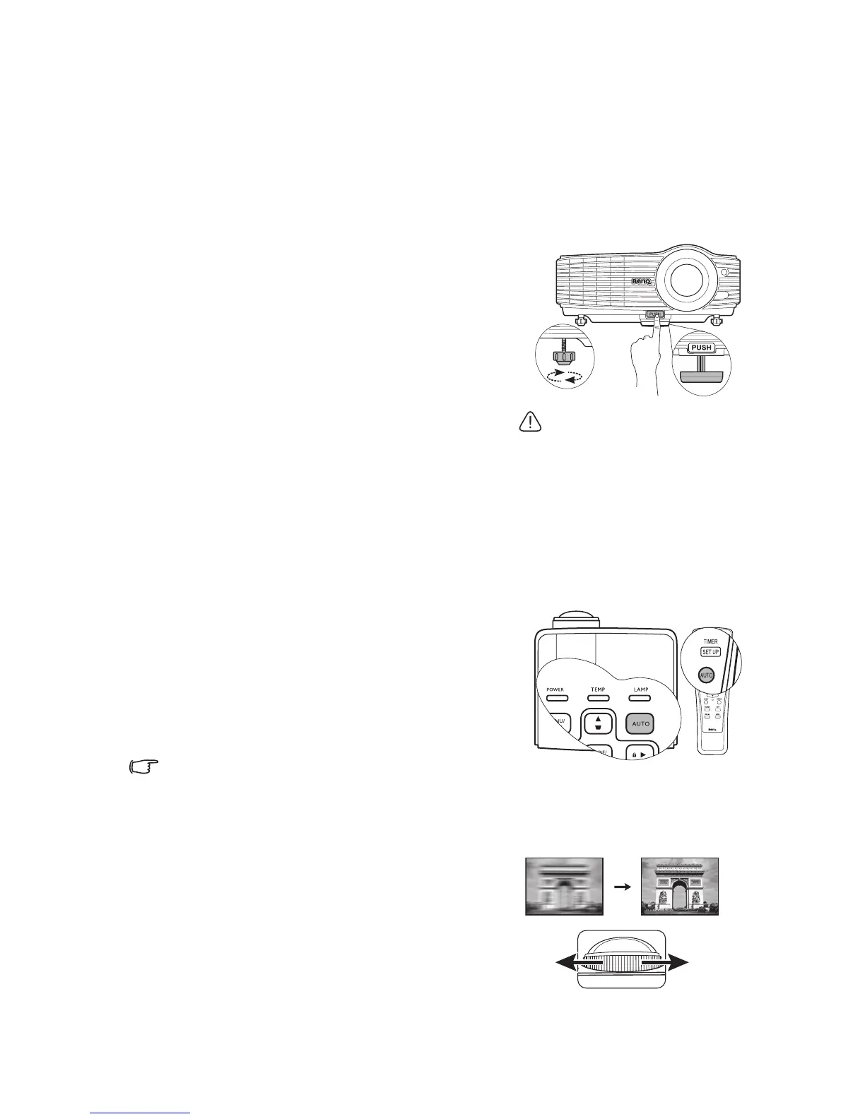 The projector is equipped with 1 quick-release adjuster foot and 1 rear adjuster foot. These
