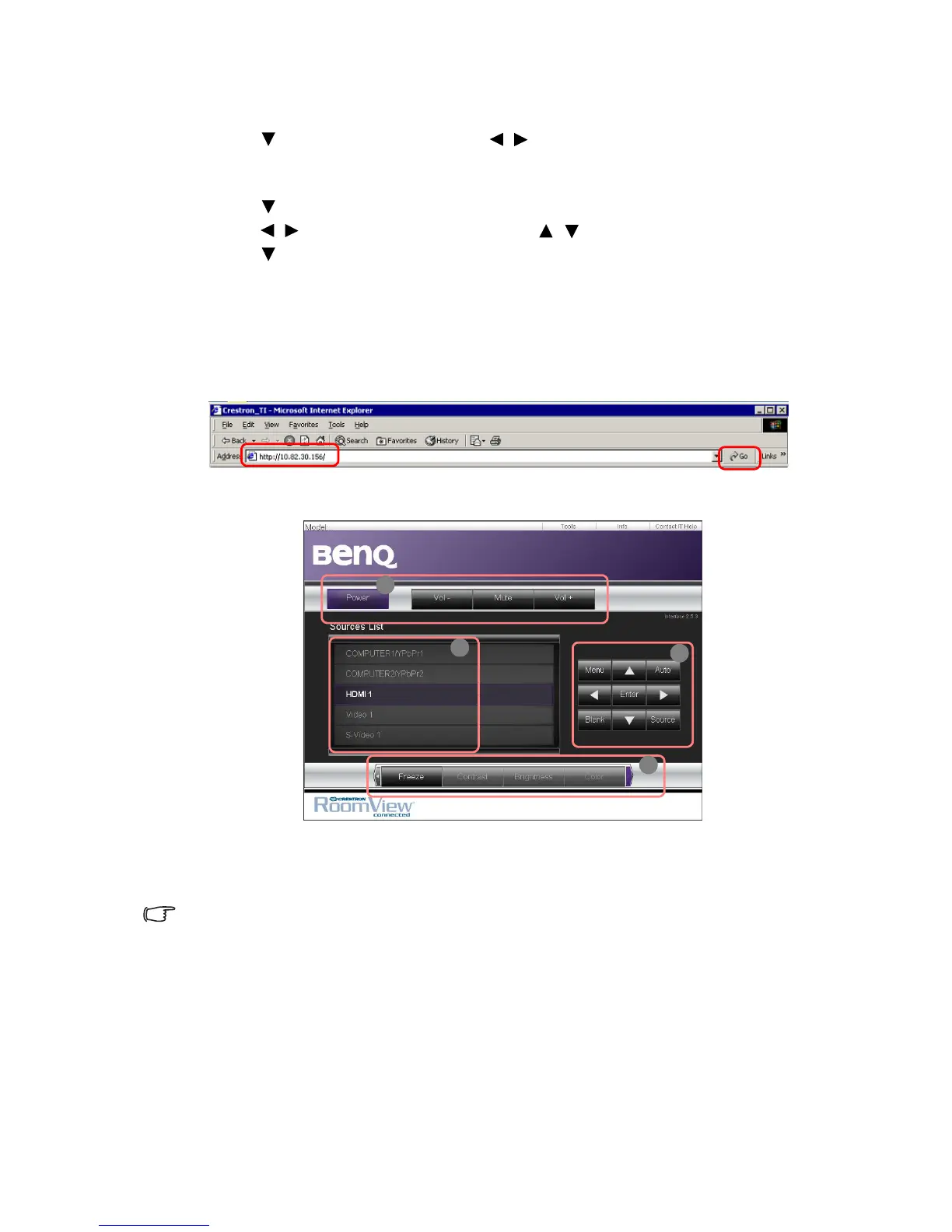 1. Enter the address of the projector in the address bar of your browser and click GO