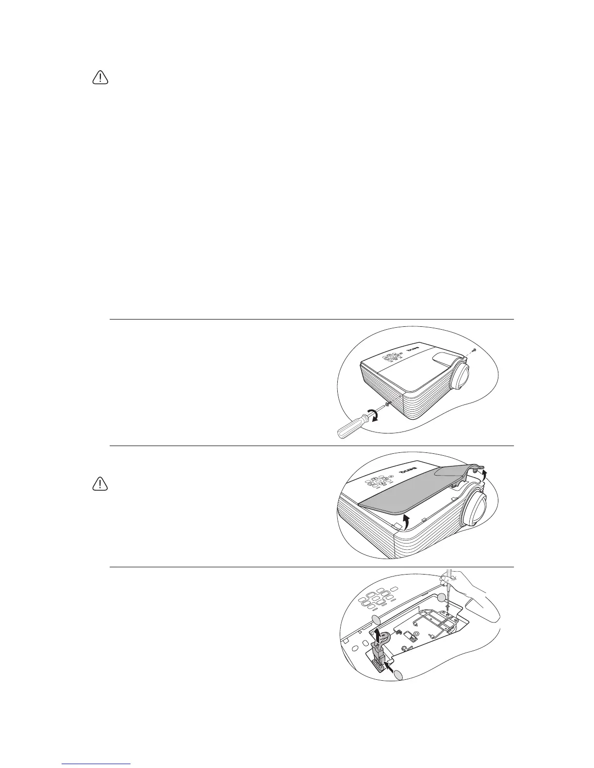 the lens, do not touch the empty lamp compartment when the lamp is removed.