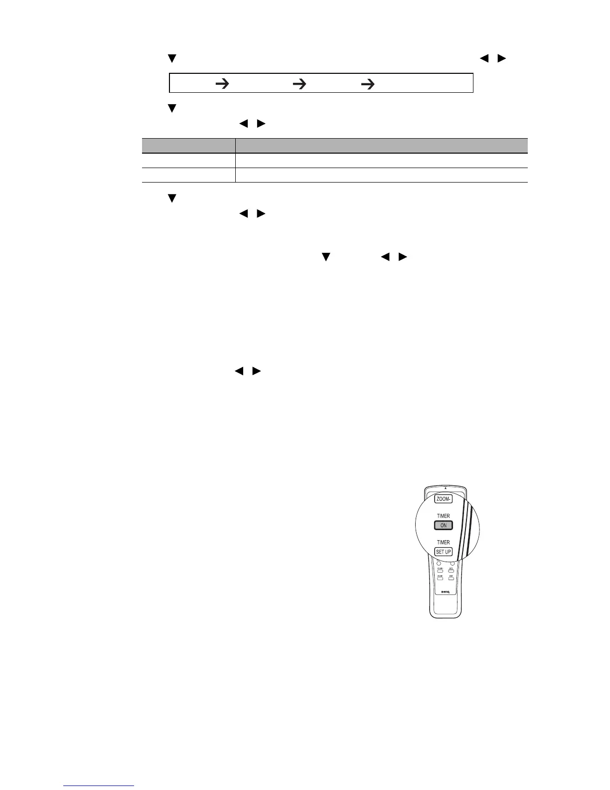 projector or remote control to confirm. You will see the message “Timer is On