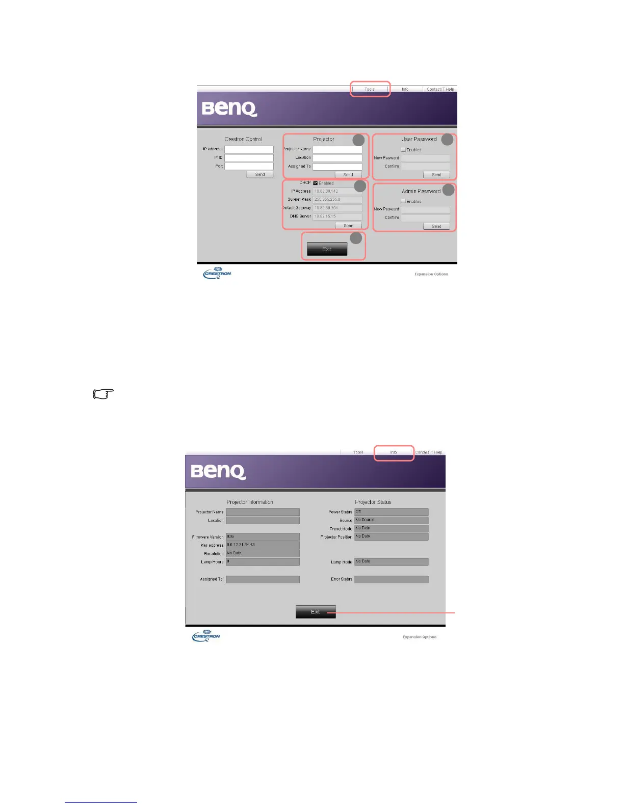 The tools page allows you to manage the projector, configure the Lan control settings and