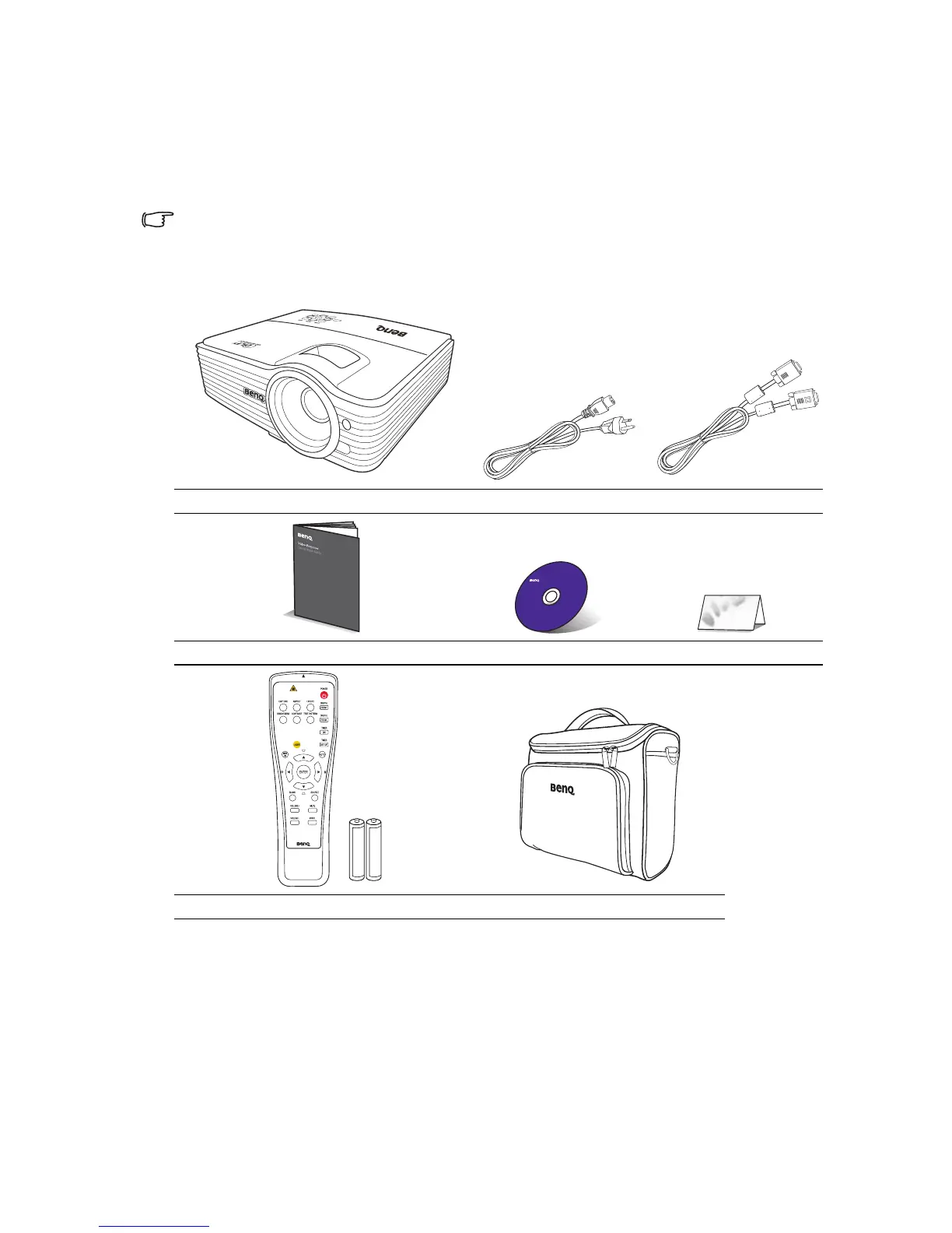 Carefully unpack and verify that you have all of the items shown below. If any of these items