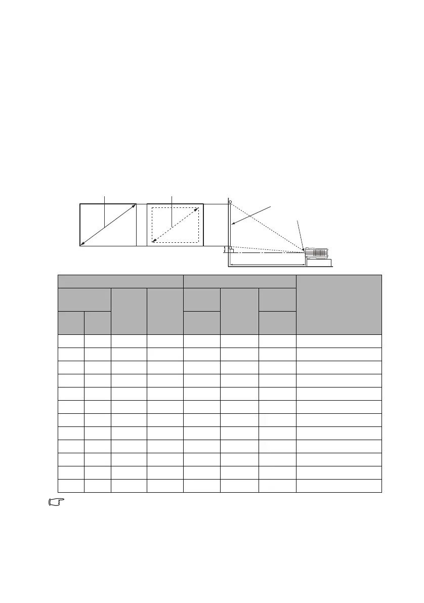 For example, if you are using an 120-inch screen, the recommended projection distance is
