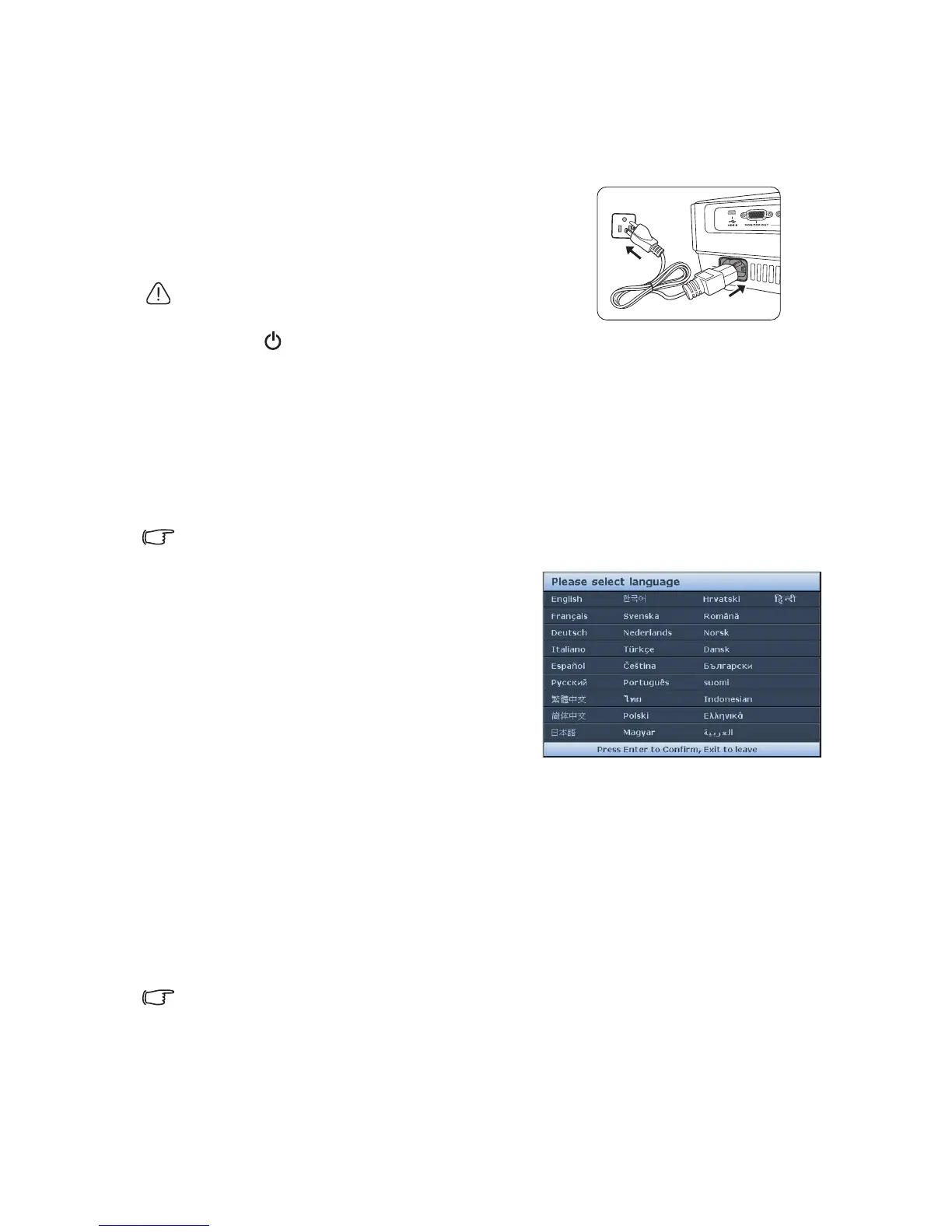 2. Press POWER to start the projector. As soon as the lamp lights up, a "Power