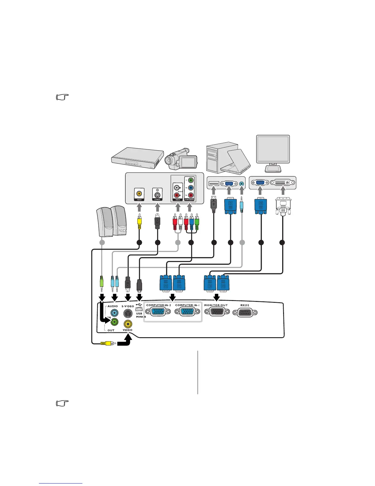 • In the connections shown below, some cables may not be included with the projector (see "Shipping
