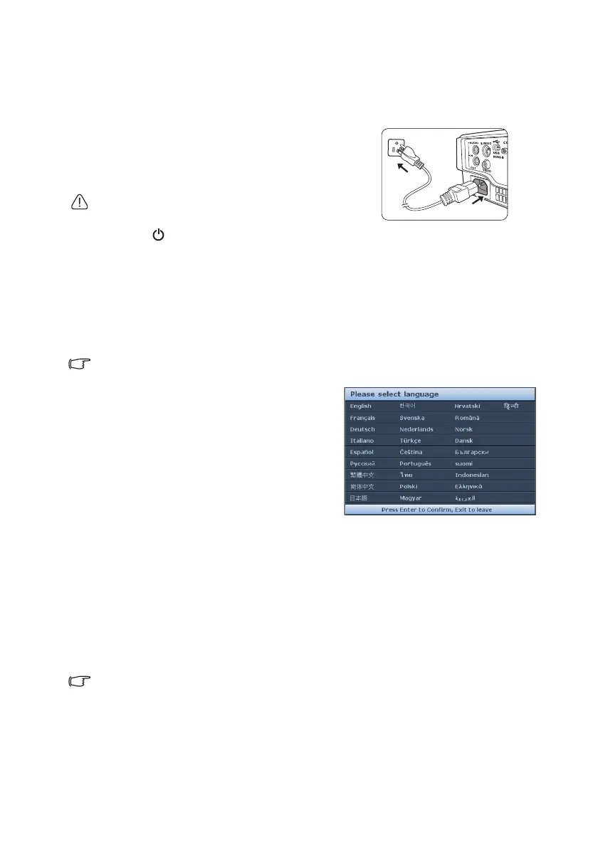 Starting up the projector