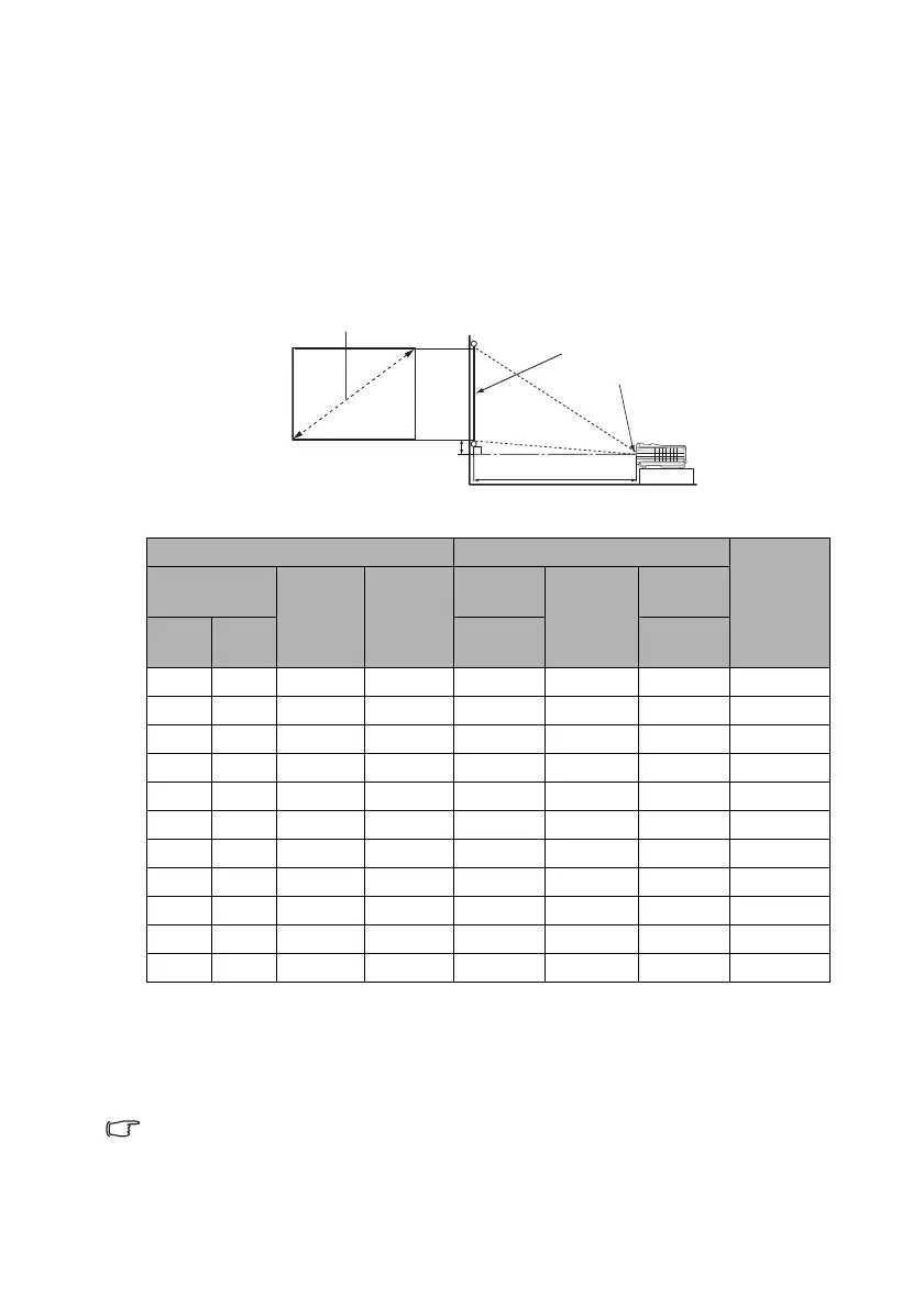 allowance for this projector's optical characteristics. This will help you determine the exact mounting position