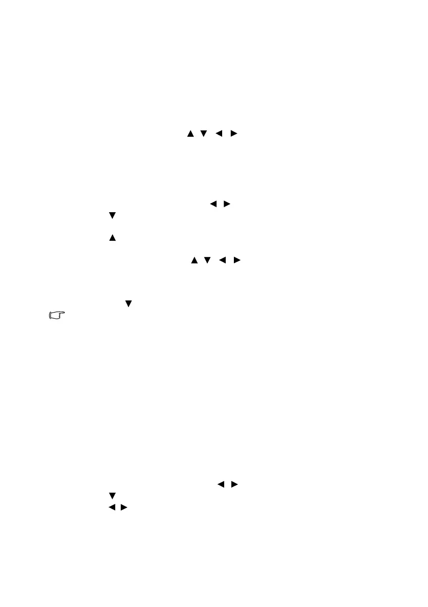 press the directional arrows ( , , , ) on the projector or remote control to
