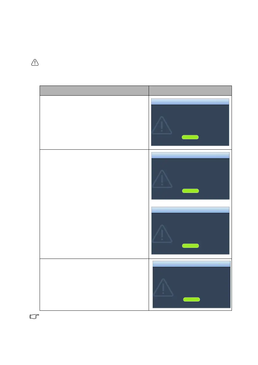 a new lamp. An old lamp may cause a malfunction in the projector and in some instances