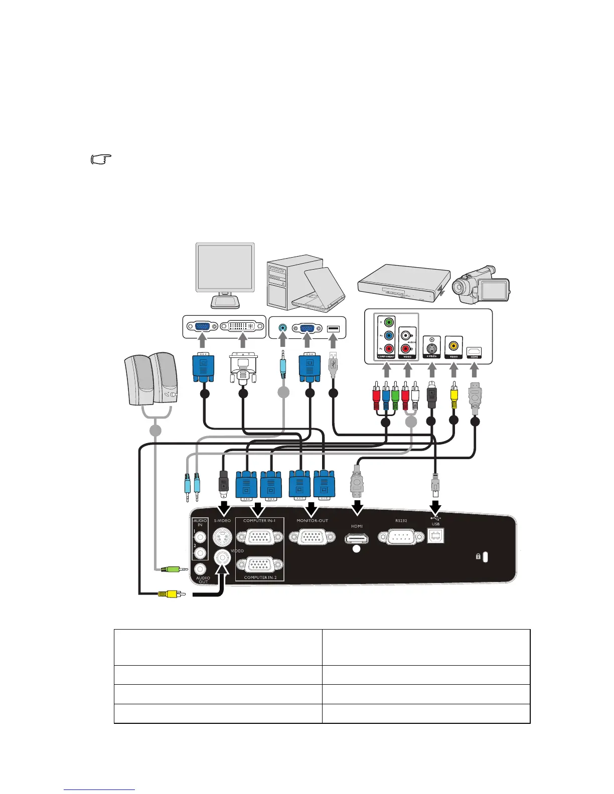 • In the connections shown below, some cables may not be included with the projector (see