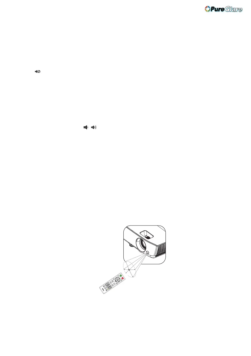 projector's IR remote control sensor to function correctly. The distance between the