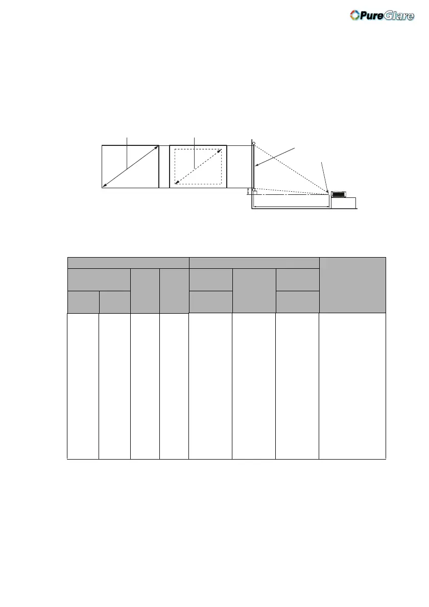 Screen size Projection distance (mm) Ver tical of fs et