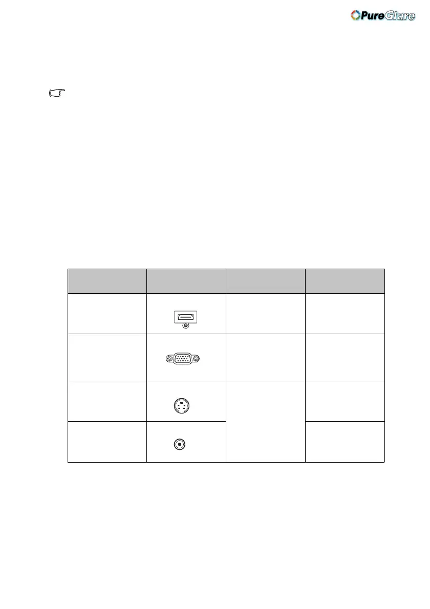 terminals on both the projector and the Video source device as described below: