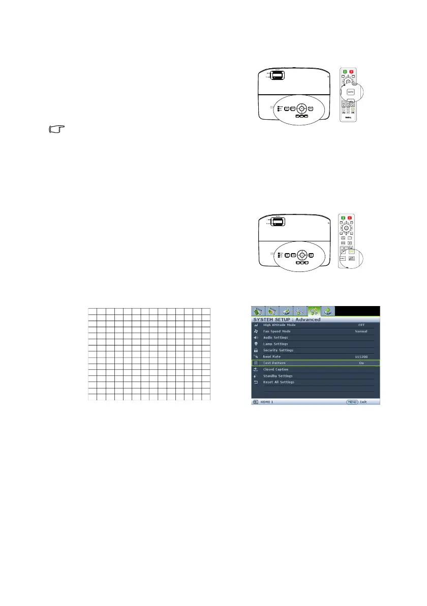 or using the test pattern build-in OSD manual from OSD or remote control for