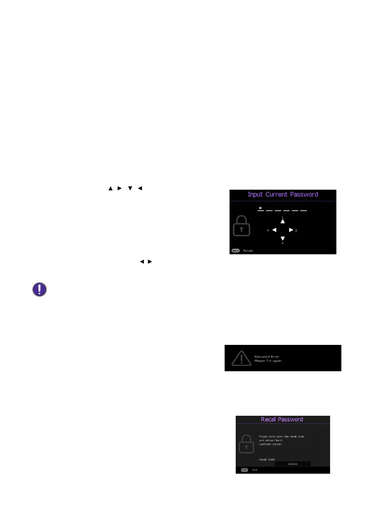 • Once a password has been set and the power on lock is activated, the projector cannot be used unless the