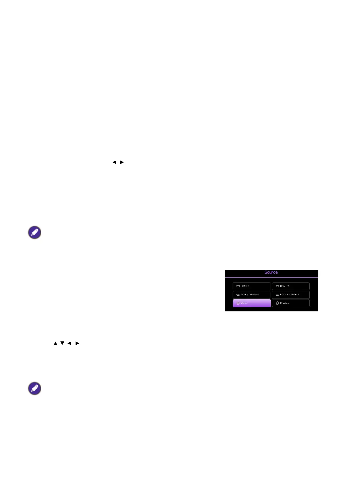 Once detected, the selected source information will appear at the corner of the screen for seconds.