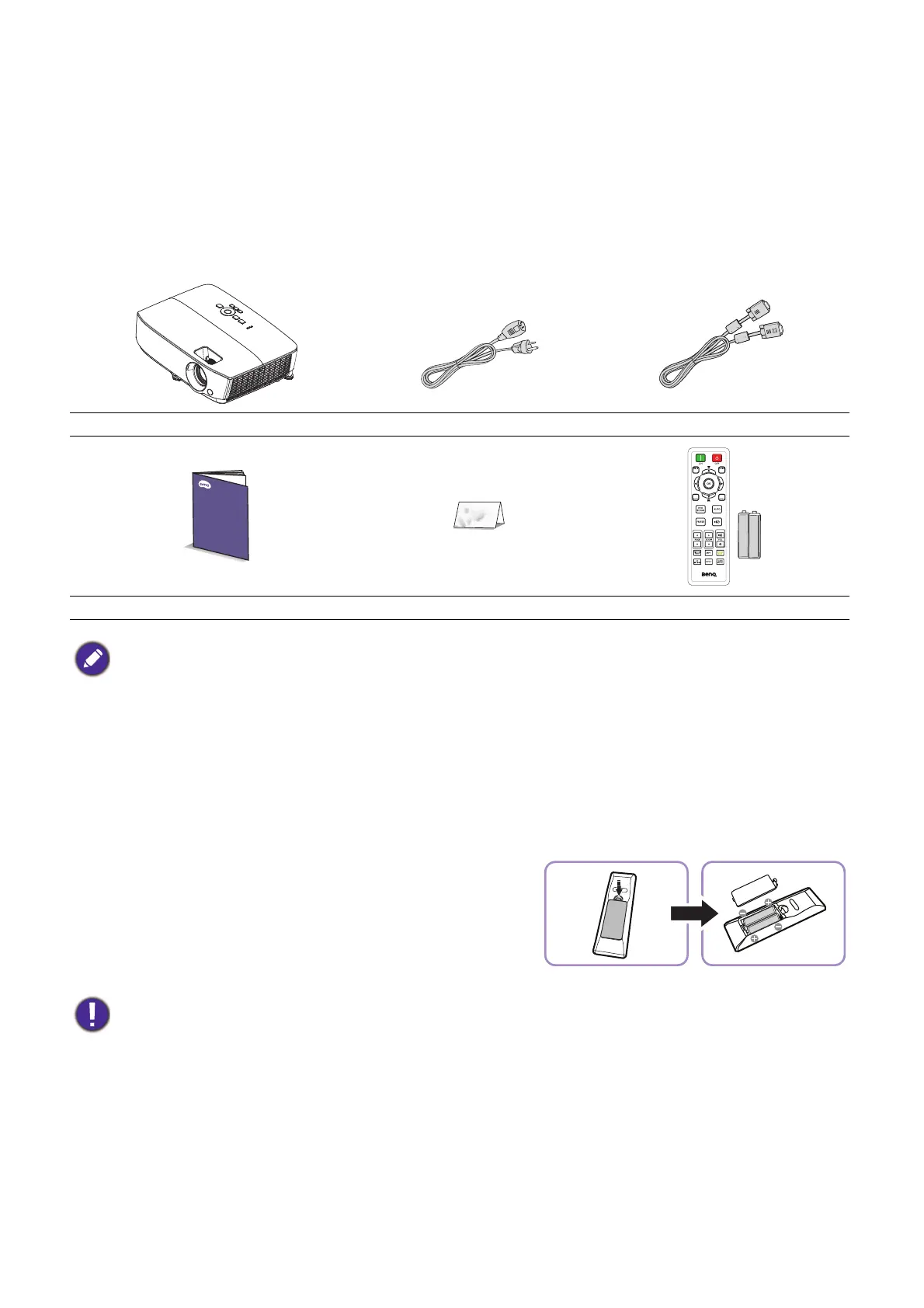 Quick Start Guide Warranty card* Remote control with batteries