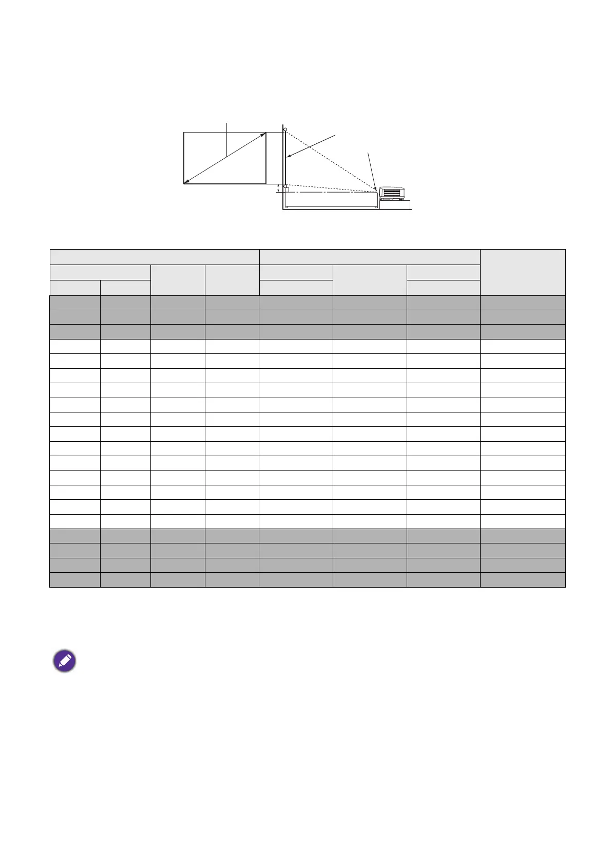 projector's optical characteristics. This will help you determine the exact mounting position so that it best suits your