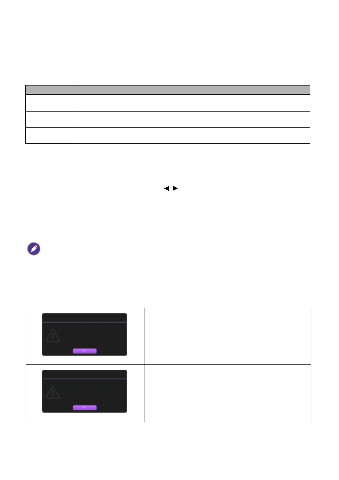 The following Lamp warning displays will remind you to change the lamp.