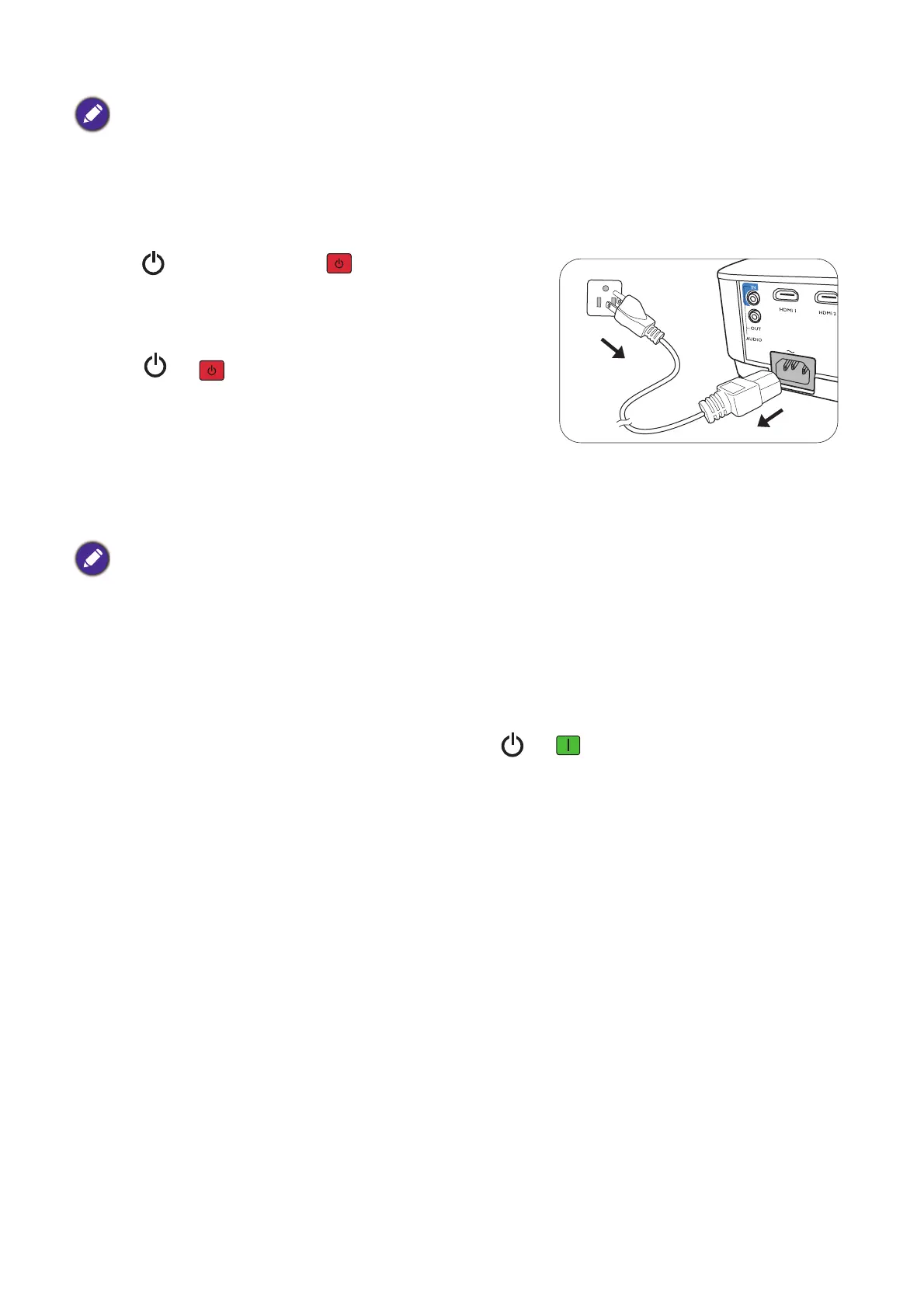 The AC power cord can be pulled out right after the projector is turned off. To protect the lamp, wait