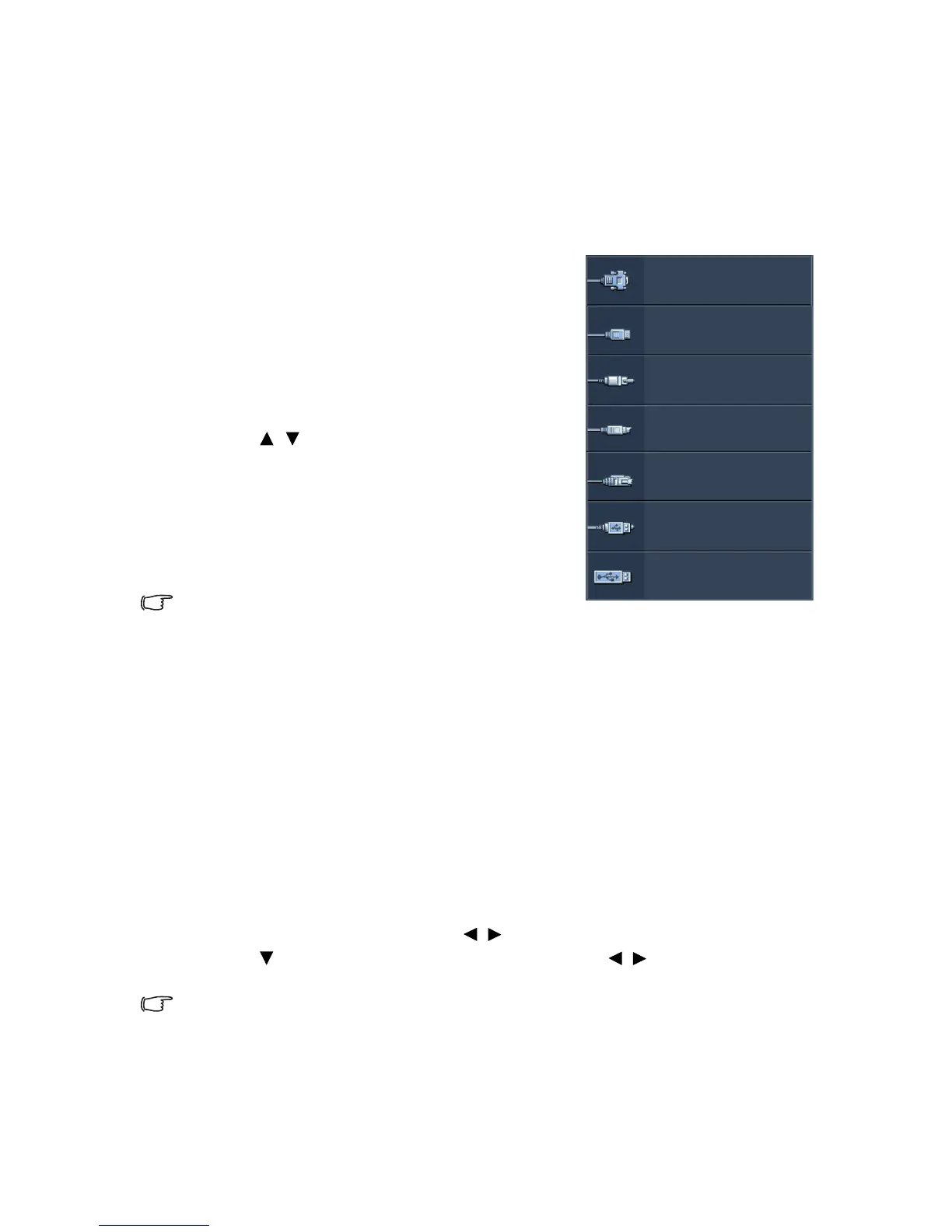 display one full screen at a time. When starting up, the projector automatically searches for