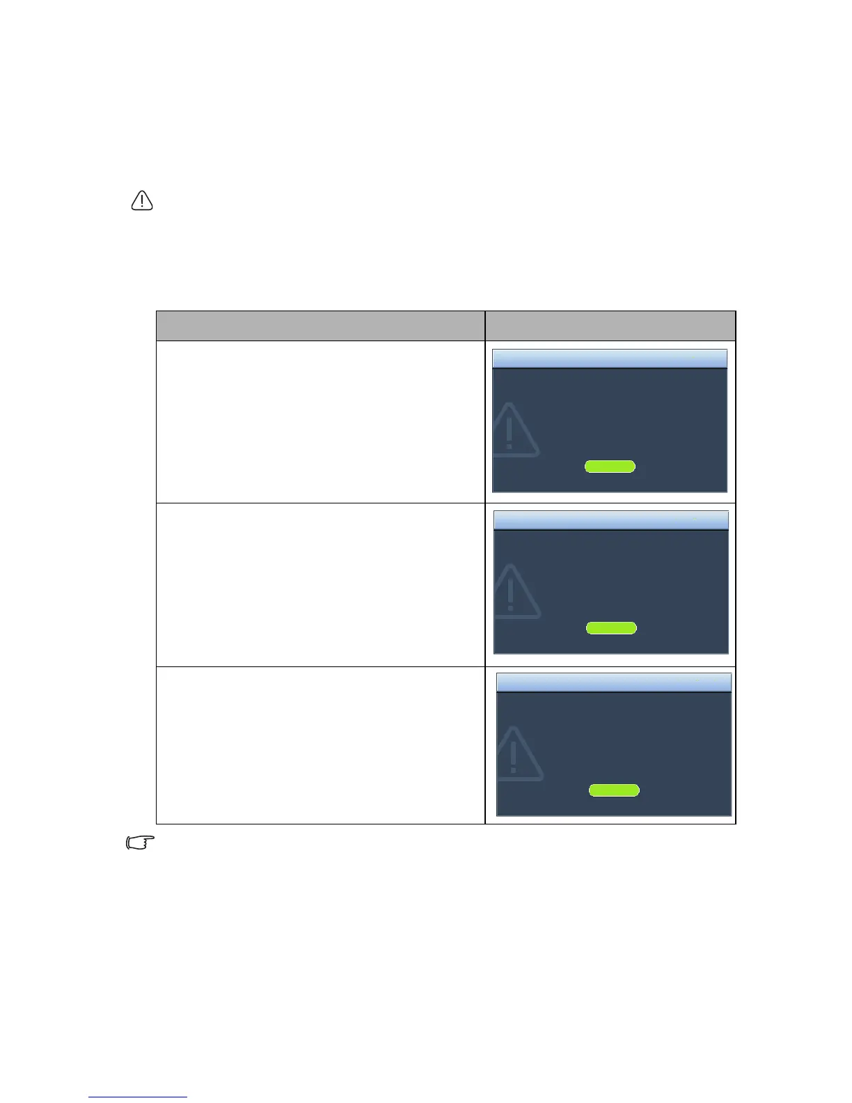 the lamp, please install a new lamp or consult your dealer. An old lamp may cause a