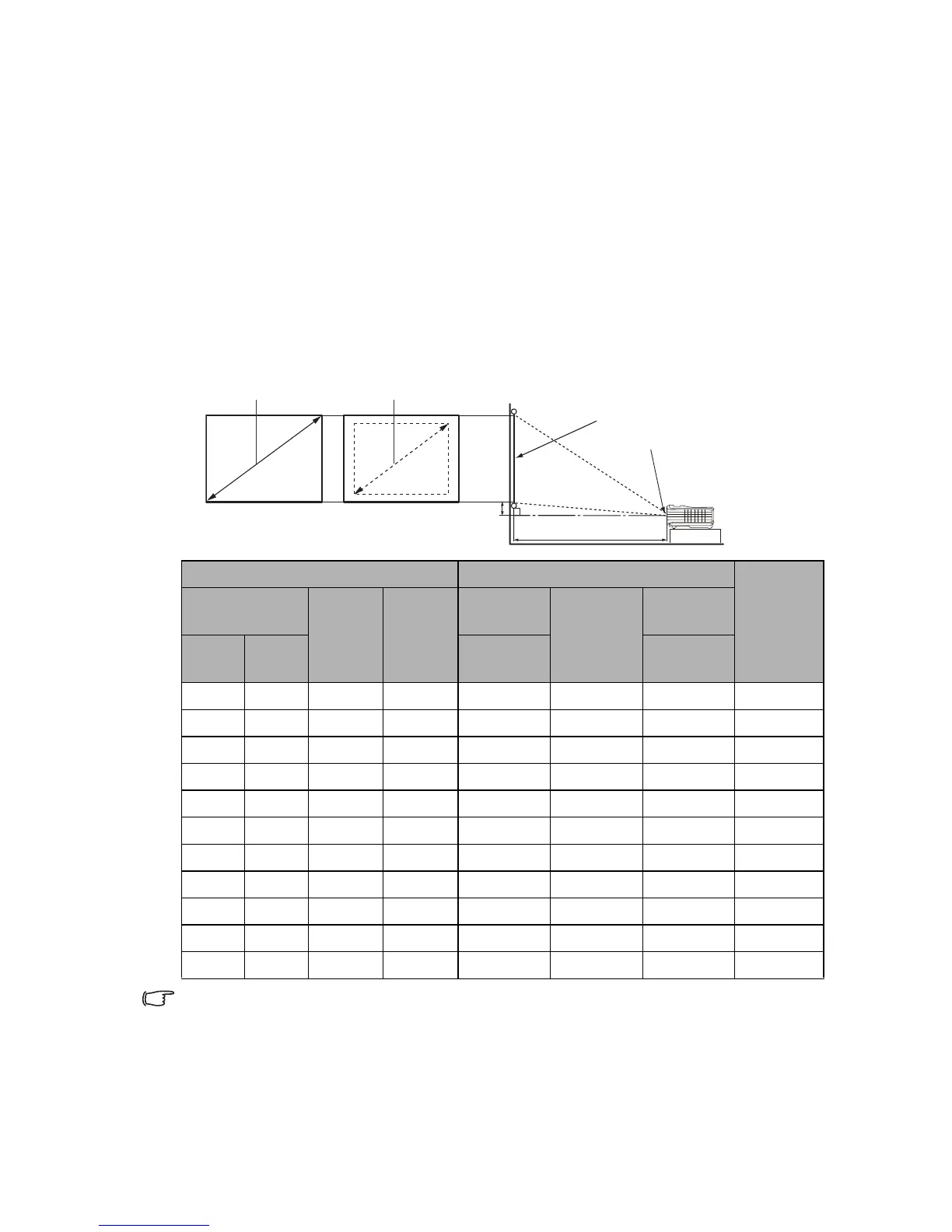 For example, if you are using an 120-inch screen, the recommended projection distance is